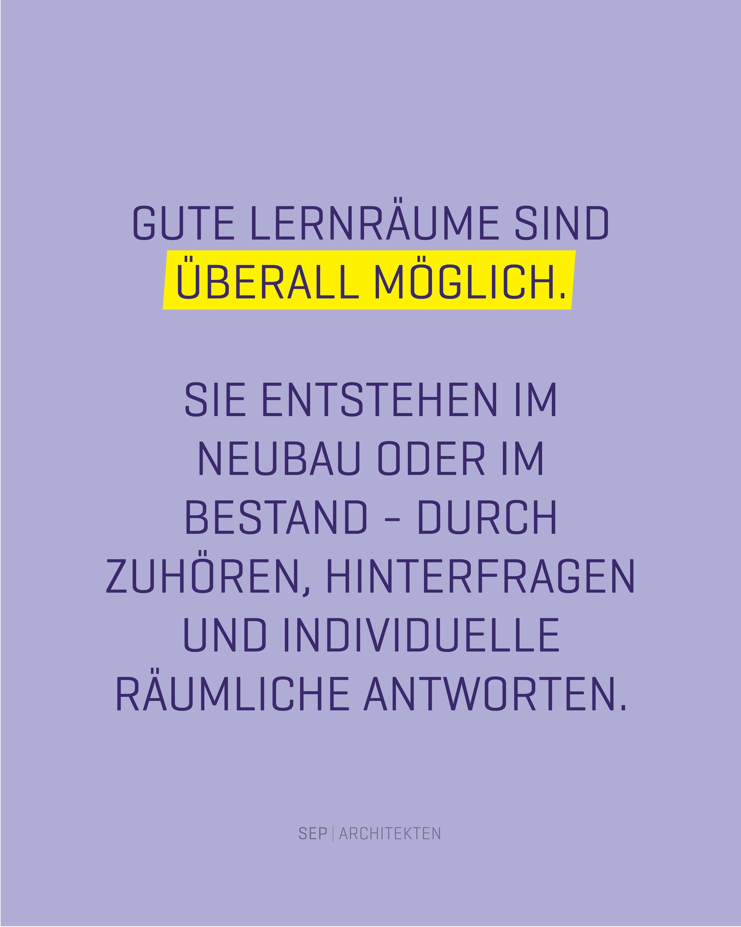 In über 40 von uns entworfenen, neuen oder umgebauten Schulen entsteht auf diese Weise Lernorte, die Kreativität fördern, Austausch ermöglichen, Vielfalt zulassen und ein Gefühl von Zugehörigkeit, Wertschätzung und Vertrauen im Alltag verankern.